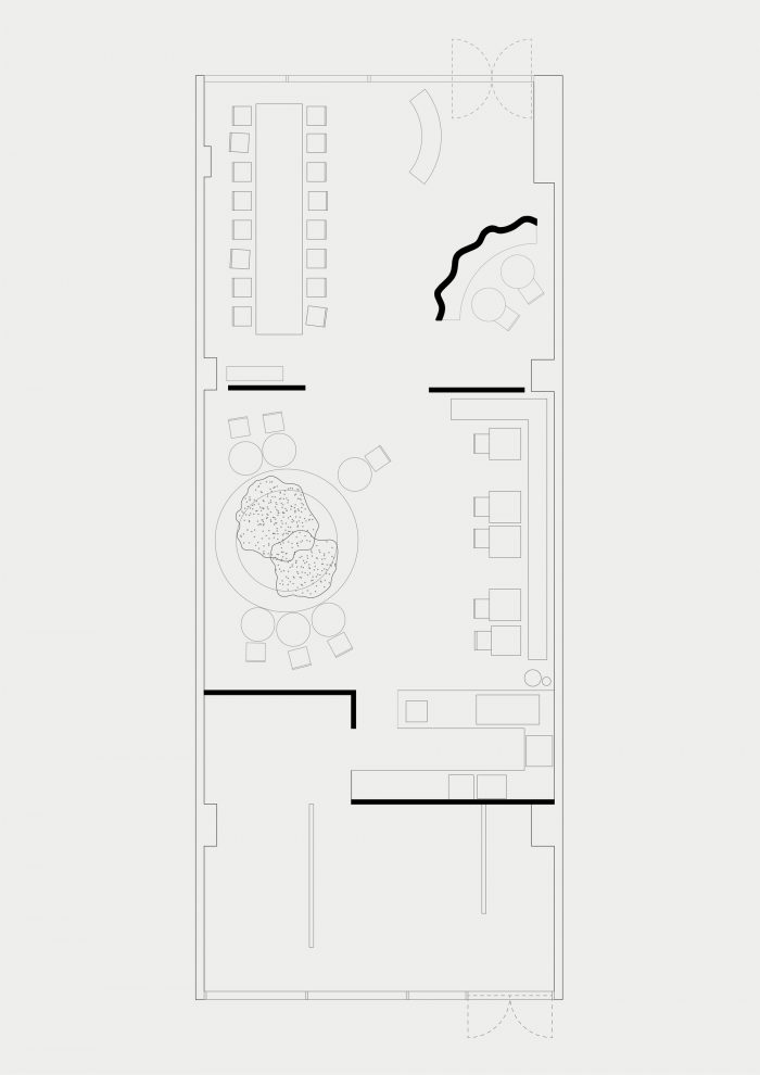 由低墙划分的软分区,通过不同的家具创造出不同的氛围。低墙使一个空间最大化。因此,游客在踏入室内时,会感觉到一个低墙群落。这个 "墙的社区 "是构成这个项目的一切。