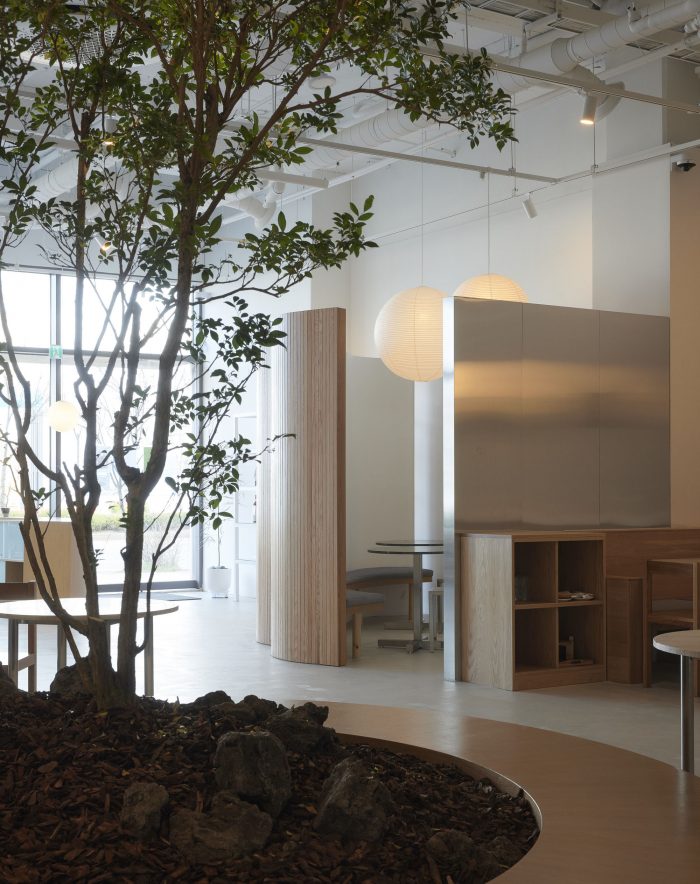 The soft zoning divided by the low walls creates a different atmosphere with the different furniture. Low walls maximize one space. Thus, visitors feel a cluster of low walls as they step inside. This ‘community of walls’ is everything that makes up this project.