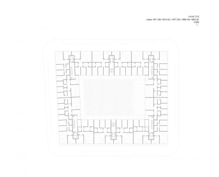 但除了这些价值,直接转化为建筑的合理性和工作的经济性,该项目还享有其他元素,使建筑的价值倍增。 与一般的小街区不同,这个庭院是一个绿树成荫的地方,在视觉上很有吸引力,冬天阳光充足,夏天潮湿通风。而在屋顶上,一个供集体使用的平台提供了优越的视野,可以看到周围的景观。它的外墙,有序而富有表现力,构成了一个强大而有吸引力的形象。该建筑的策略,专注于合理性和效率,已获得BREEAM认证,可持续建筑证书。