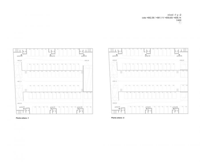 On a precise geometric support, a housing puzzle has been composed in which each and every one of the pieces is valuable. Each one of them is a good house, composed by pieces of adequate size and surface and a system of strictly organized functional relations. The block, with a hundred dwellings set in only six vertical cores, achieves an optimal ratio between buildable and useful surface avoiding in any case renouncing double orientation and crossed ventilation.