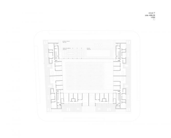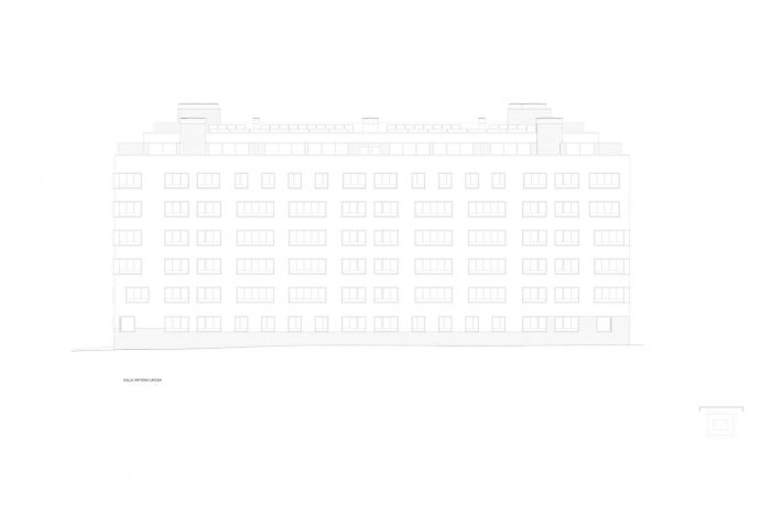 在一个精确的几何支撑上,组成了一个住房拼图,其中的每一块都是有价值的。每一块都是一栋好房子,由足够大小和表面的碎片和一个严格组织的功能关系系统组成。这座由100个住宅组成的建筑只用了6个垂直的核心,实现了可建面积和实用面积的最佳比例,在任何情况下都避免了双重方向和交叉通风。
