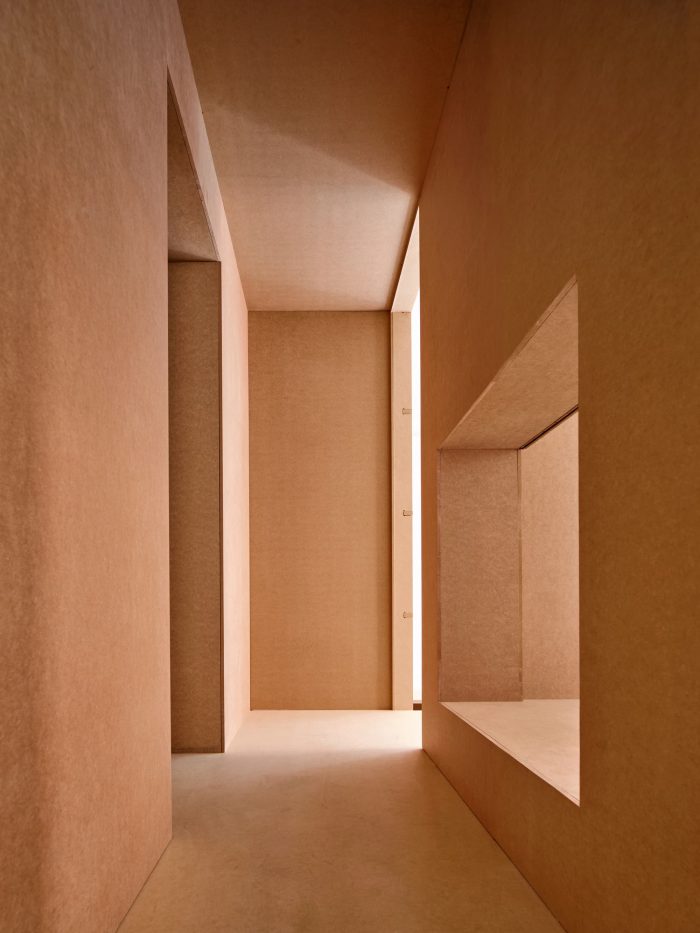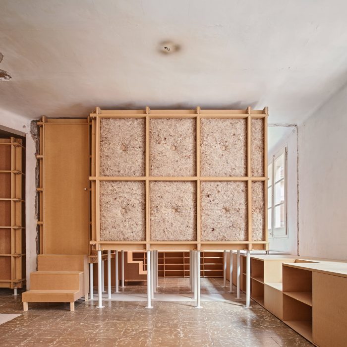 3. Reduction of the material palette to the maximum: materials are chosen that maintain a cost/structural and energy efficiency ratio that is as balanced as possible. In this sense, the main materials used in the construction are standard MDF panels and local natural sheep wool.