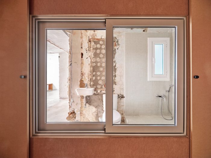 4. Elimination of the item for new coatings (paint, plaster, tiles, etc.) after demolition and replacement by a simple thorough cleaning of floors, walls, and ceilings. The traces of the previous partitions, flooring and electrical appliances are left visible after their demolition, thus saving both in the purchase of new materials and in execution times.