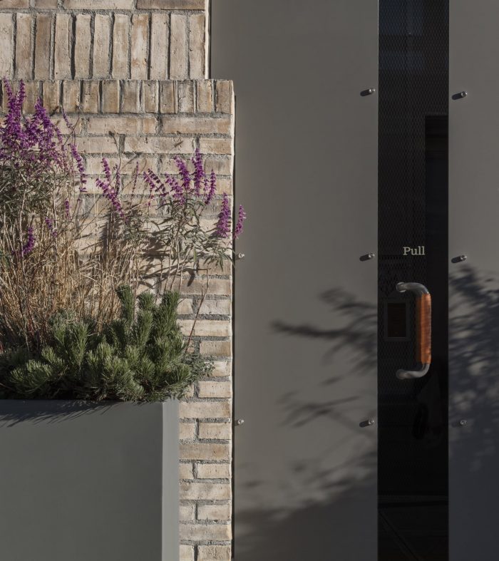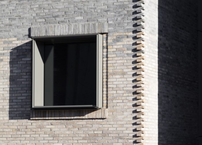 虽然我们不想假装 "基础建筑 "不是全新的,但我们希望前五层能向现有的砖石和灰泥唐楼邻居致敬。我们用手工制作的燃煤砖覆盖了前五层,并设计了我们自己的锈蚀砖石细节。深框玻璃增加了外墙的质感,同时减轻了太阳热量的吸收,皮肤以一种柔和的图形方式对一天中的太阳路径作出反应。我们选择的砖块随着建筑的上升而巧妙地改变色调,直到它们与上面的体量的包层紧密结合。塔楼的上部--超出相邻建筑屋顶的部分--用锌板包覆,然后用百叶窗的面纱包围。虽然它们的主要目的是--就像下面的窗框--缓解太阳辐射,但百叶窗也作为阳台的栏杆,在外墙上创造额外的深度,产生动态的阴影游戏,并模糊了外部的机械部件。这两个信封的颜色、比例和质地相互参照,更像是兄弟姐妹而不是陌生人。