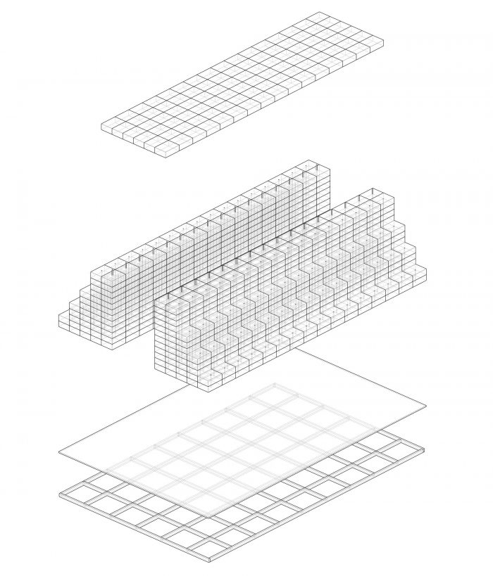 该项目是关于提供一个关于日常的新视角。作为一个灵活的元素而不是一个固定的元素,一个展馆由1300个半透明的篮子结构表面组成。一个相对标准的市售篮子被重新用作亭子。单独的1300个篮子也是为了在拆除装置后重新使用。