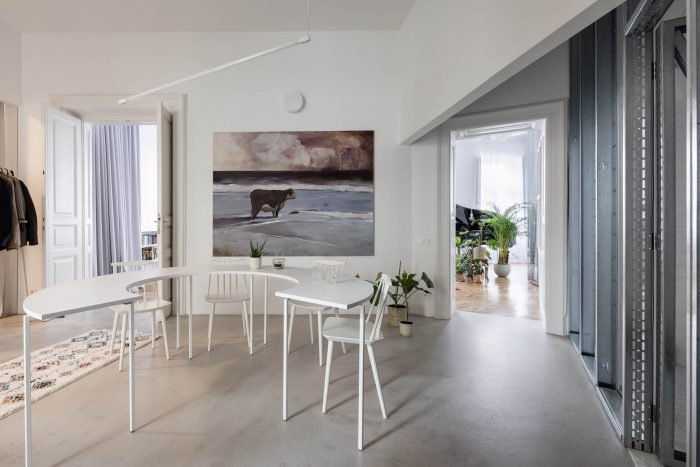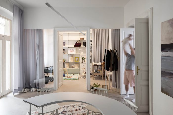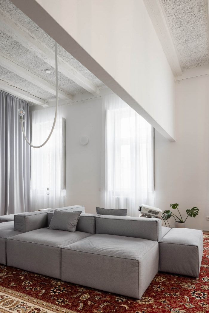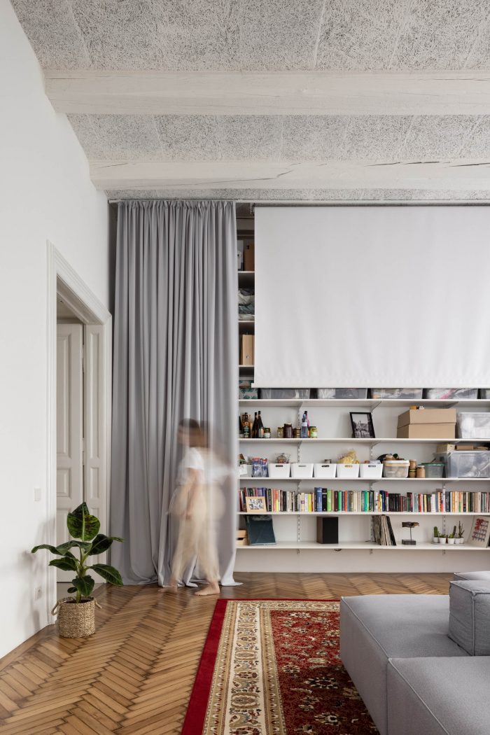 We told ourselves, that we’re going to let space stand out and work just with it. We want these huge open volumes because it’s all about having that airy space. About seeing from one side of the apartment to another. About a feeling of openness and simplicity and about finding space for our individualities, experiences, and joys. We need to think of what exactly do we need in our lives.