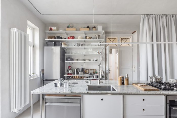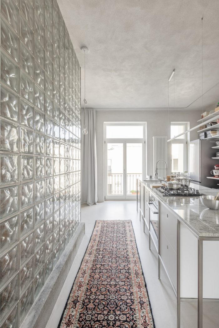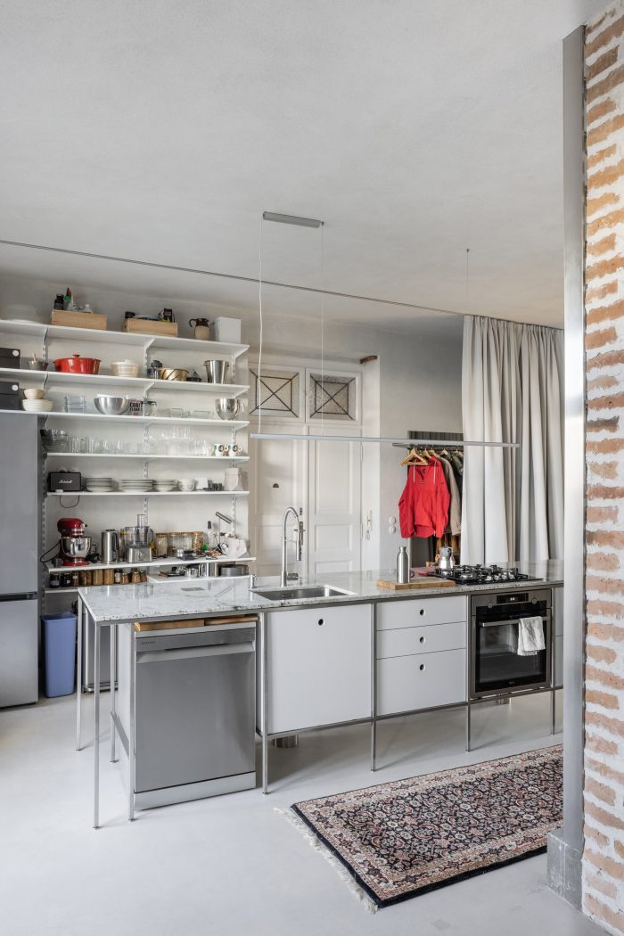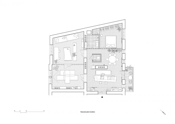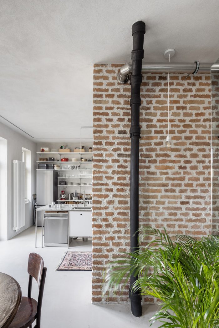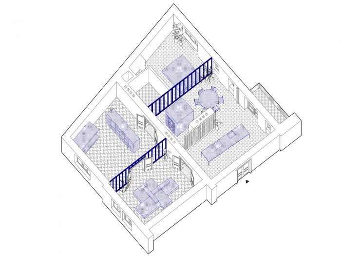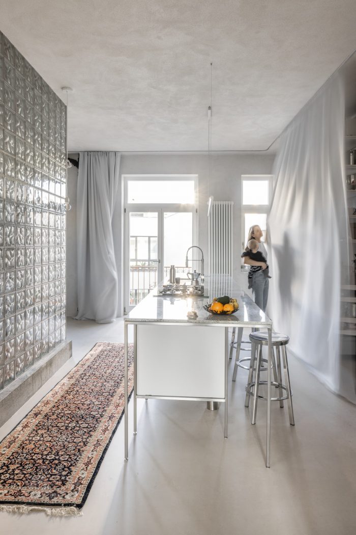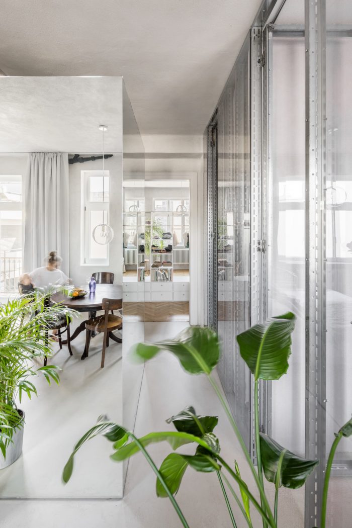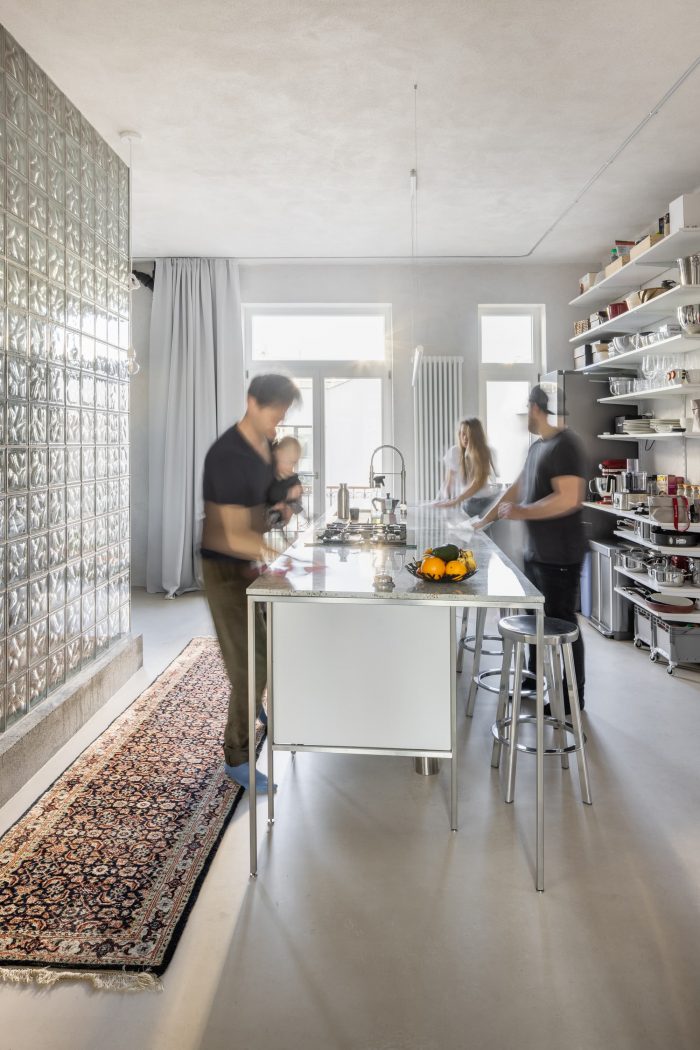 原有的和新的结合在一起。一套位于市中心的20年代末的公寓,供一个成长中的家庭使用。该公寓被分为两部分。东南面的房间有过渡性的房间,原始的木地板和双翼门。