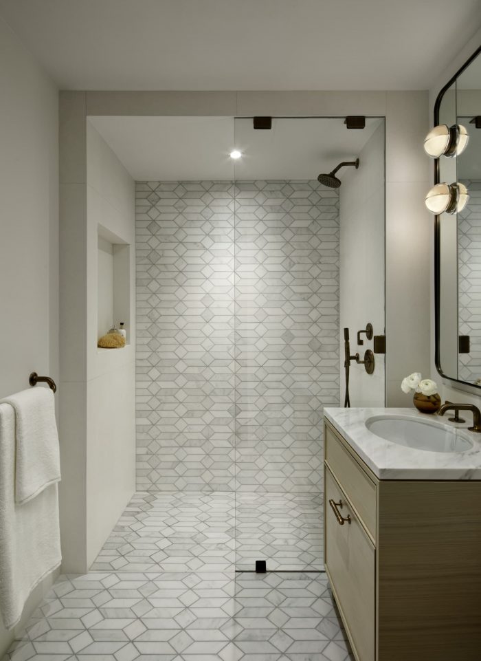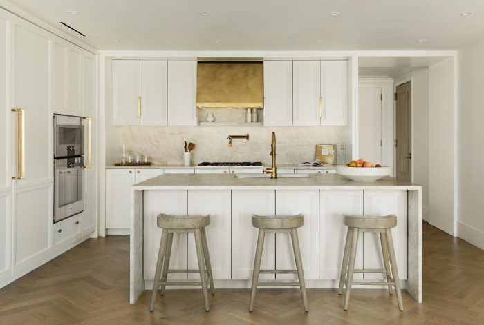 Each of the building's 41 residences is filled with natural light through oversized windows with historically inspired mullions that contrast the rich character of the masonry by adding crisp, sophisticated lines to the façade. Inside, marble, oak, and brass finishes were chosen to reinforce classical architectural elements.