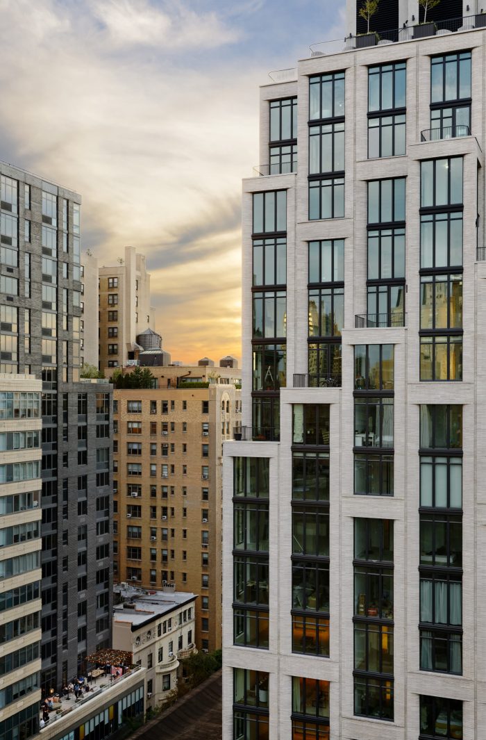 Architecture. Unlike most new-construction glass towers, 2505 Broadway embraces the hallmarks of classic pre-war buildings. Since most of the Upper West Side’s classic architecture is made exclusively of brick masonry, ODA used this material to create the building’s facade so that it would be instantly woven into the fabric of the neighborhood. ODA aimed to elevate this heritage with custom long-format Petersen bricks, whose hand-molded fabrication in Denmark by eighth-generation brickmakers creates a richness in texture and character.