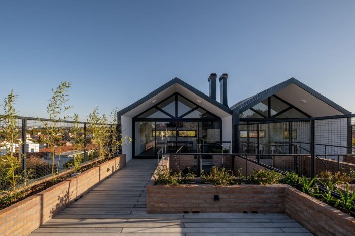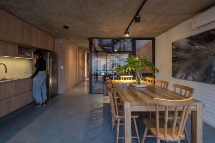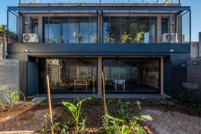 The two houses are located in a residential neighborhood near the Suquía river in Cordoba, where an existing studio house that adjoins the triplexes accompanies the new blocks and completes the set of buildings in a functional and visual way.