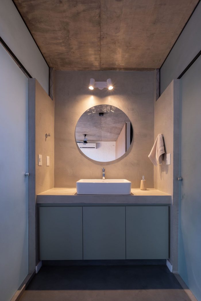 The first floor is the most private level including two en-suite bedrooms that finish off the north and south facades, cushioned by circulation along the middle patio and a working desk corner that enables the new post-pandemic ways of life.