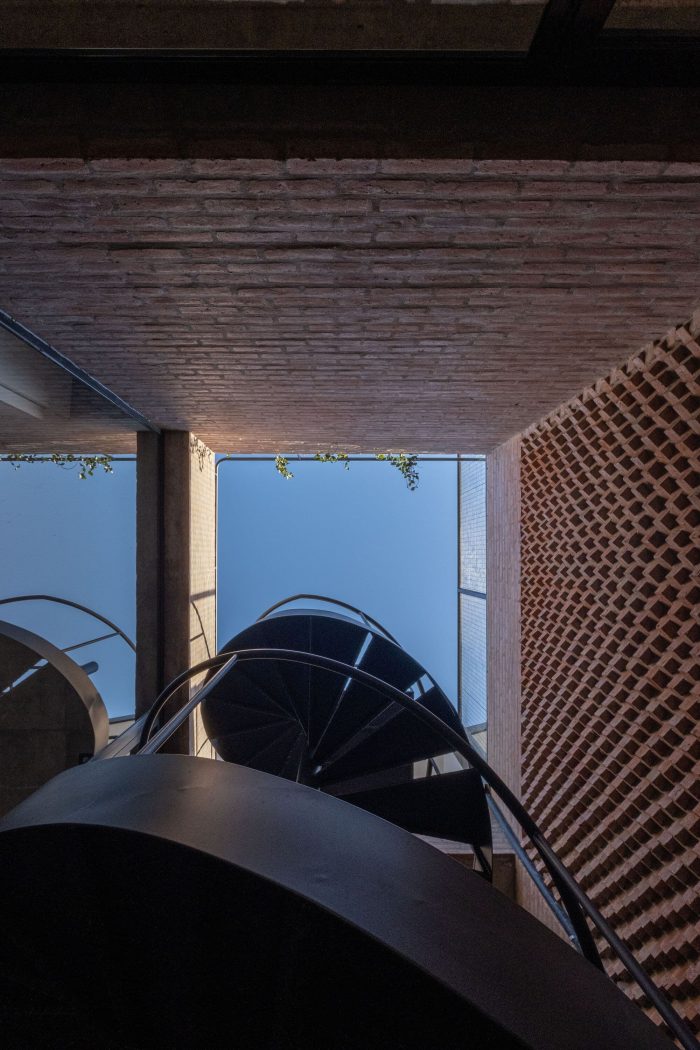 The third and last level hosts a morphologically disruptive structure covered by sheet metal that reinforces horizontal discontinuity while vertically unifying the triple-height houses. This aesthetics contrasts with the brick blocks that dialogue with the adjoining loft up to a second level.