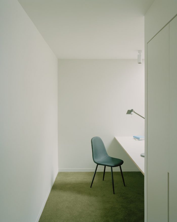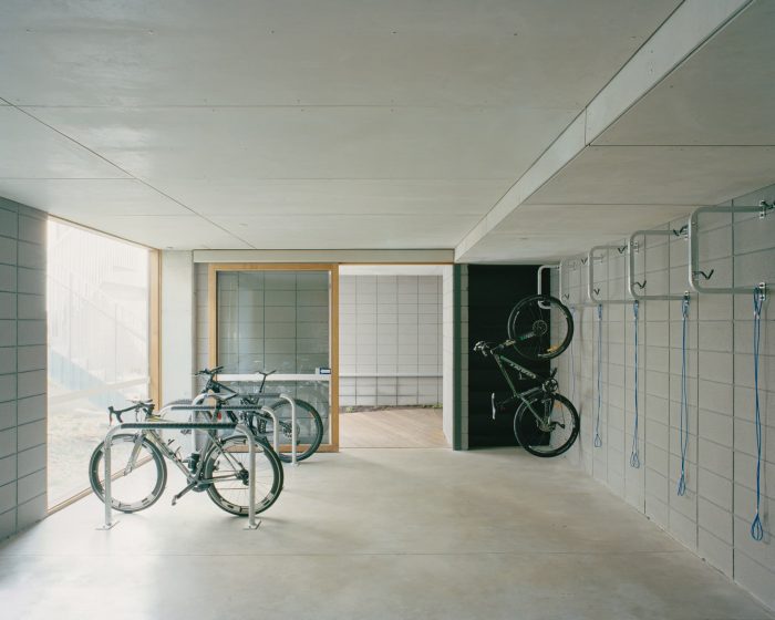 As part of the ambition to provide amenities similar to a more substantial house, key features include large fully-plastered storage rooms for each apartment, on-grade car parking, and a generous communal bike parking room located centrally to the building with maintenance facilities and automatic doors for ease of access.