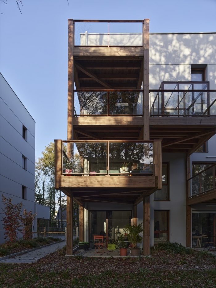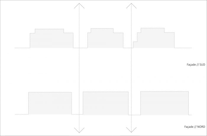 Architectural bias. These are lively buildings and we believe that this generosity in the outside spaces will allow the inhabitants to take full advantage of their terraces and thus participate in the animation of the district. Thus, each outdoor space offers a minimum depth of 2 m, and up to 3 m for all the spaces to the south / west. The use of glass for the railings favors the reflections of the close environment, and on the other hand it puts the inhabitants at a distance and avoids the installation of occulting devices to isolate the glances.