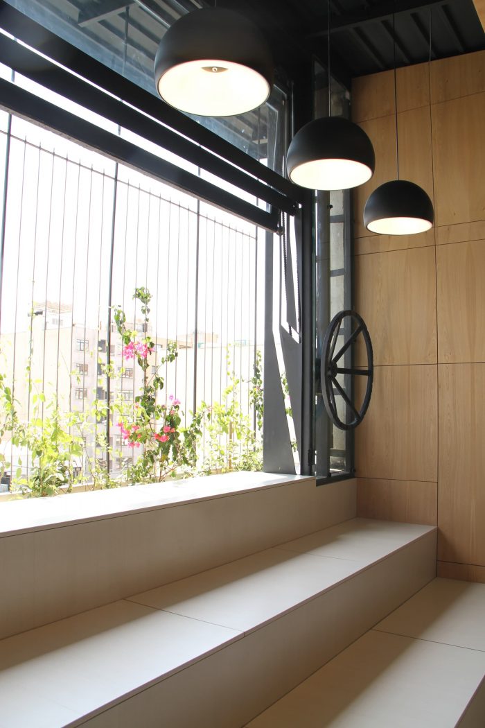 Due to the 80-degree angle sunlight in the summertime at the south edge, a metal mesh covered with vines was embedded in the front of the window to prevent the discomfort of severe sunlight in summer and also not blocking the delicate sunlight in winter and finally increase the privacy and visual quality of the interior space.
