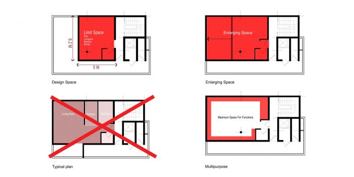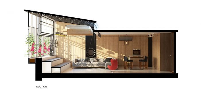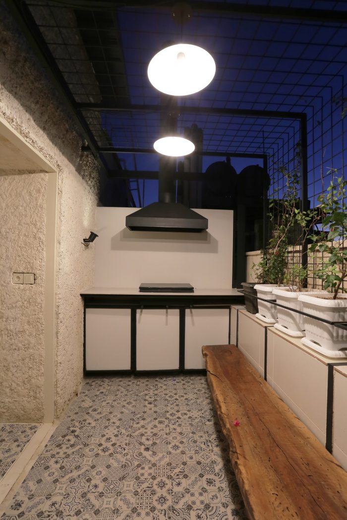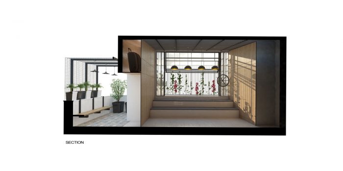 Instead of devoting the entire space on the roof, we have established a semi-open space (roof terrace) as one the essential spaces of a residential place. This space has the possibility to merge to the main and interior spaces which can be used as a dining table, barbeque and smoking area.