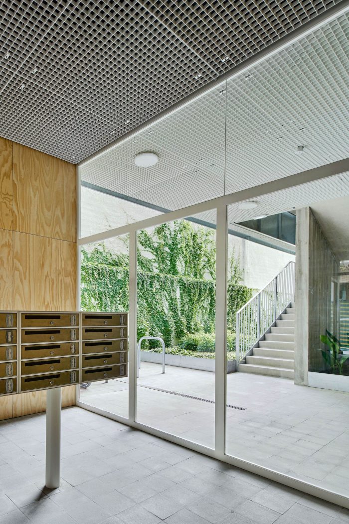 地面和一楼的临时住房中心是通过一个开放的公共通道进入的。住宅的入口是通过一个独立的封闭式大厅和通信核心,它向侧面开放,有双倍高度的空间。在地面和屋顶层有公共和室外空间(多功能室、洗衣房、果园、露台、门廊),将生活方式扩展到公寓之外,从而弥补了公寓面积的减少。
