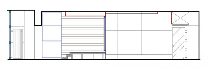 公寓的前面部分被设计成一个自由流动的空间,每个区域都与其他区域保持视觉上的联系。主卧室也是这个空间的一个区域,由宽大的门/门和类似窗户的开口连接。床被架在一个平台上,隐藏在砖墙后面,这使得它从任何角度都无法从客厅看到。因此,生活区得到了视觉上的延伸,但睡眠区却保留了它的私密性。客厅中突出的体积增强了卧室和客厅之间的空间关系。它没有达到天花板,用黑色金属片修饰,以强调这种结构的微妙性。