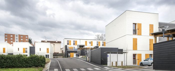 The Tectoniques agency has extensive experience in building housing in eco-neighbourhoods, with a committed and ambitious environmental approach, using a specific construction protocol based on dry construction mainly using prefabricated wood components. The Rive de Gier project takes this basic approach to new heights.