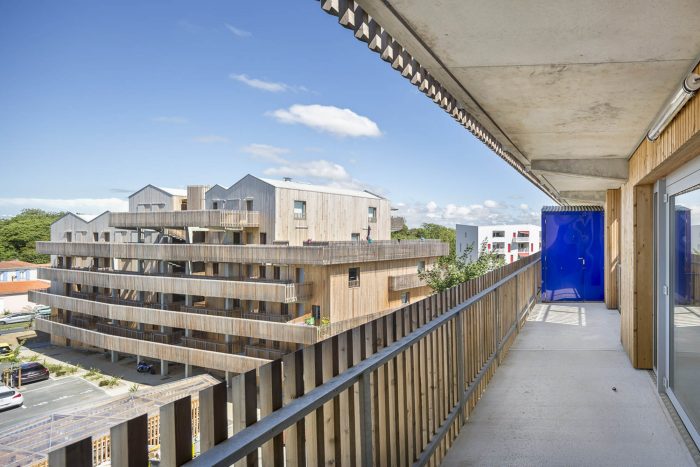 Outdoor corridors allow an aerial walk, offer numerous views and support neighborly relations. Besides, they enable the dwellings to be dual-aspect, to benefit from double or triple orientation, and preserve privacy. They lead to only 6 dwellings per floor.