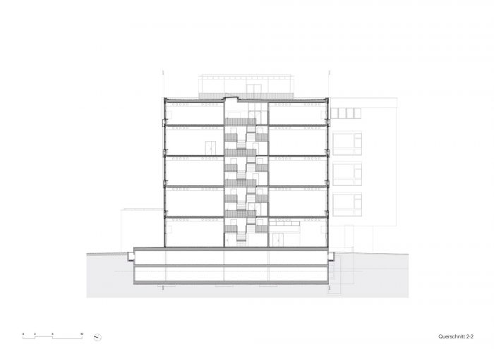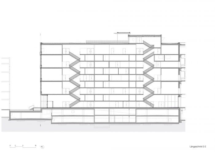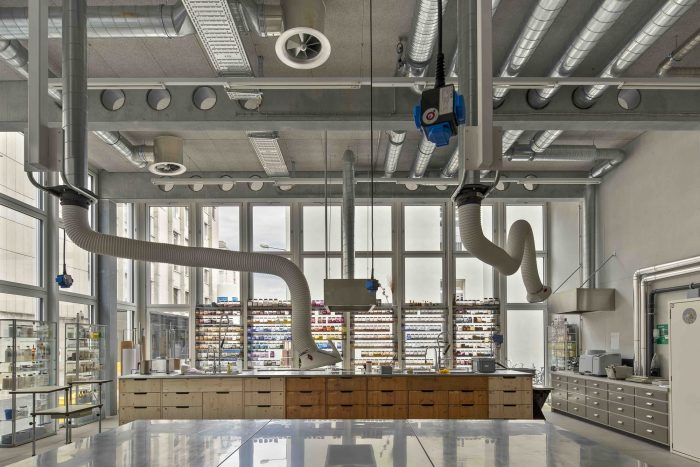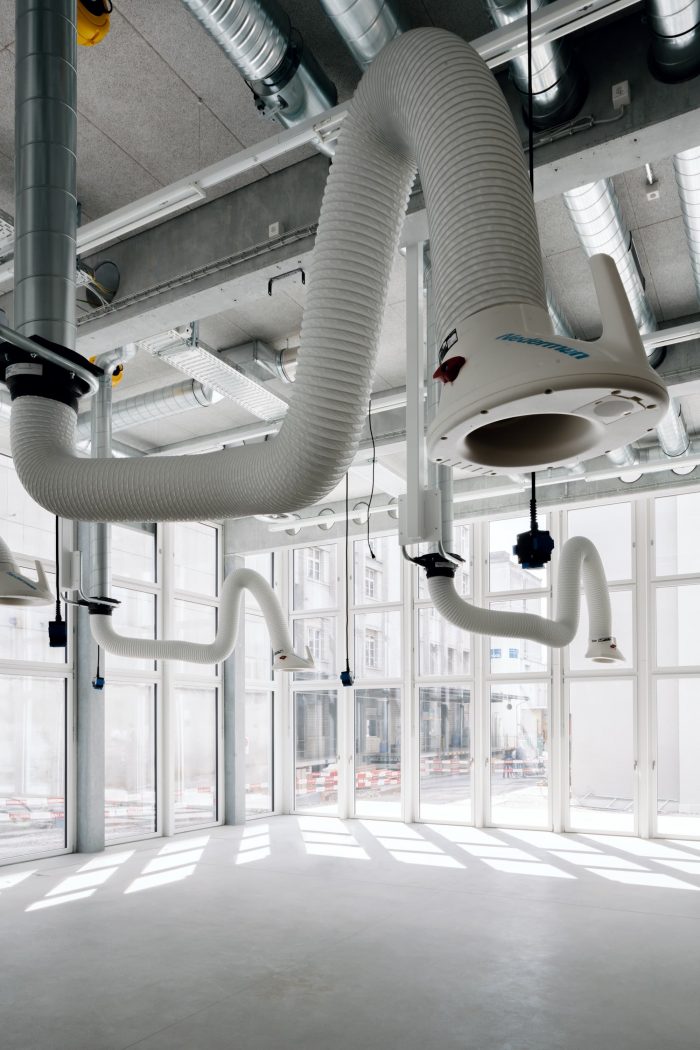 The building consists of various teaching facilities and multiple workshops ranging from fully equipped woodwork, steel work and printing ateliers to studios for design and manufacturing of jewellery as well as hi-tech facilities for computer aided manufacturing, common spaces and a publicly accessible room that houses one of the Switzerland’s largest collection of natural and synthetic pigments. The proposal for the Arts and Design Department Building for the University of Applied Sciences Lucerne, illustrates our approach to working in close collaboration with representatives of the University’s various chairs, in order to ensure that their individual spatial requirements are met and exceeded, toward successful, inspiring and innovative teaching environments.