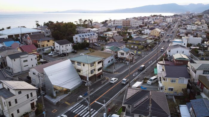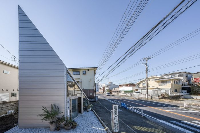 The theme is to open an atelier in Ninomiya-cho, located between Oiso (8th post town) and Odawara (9th post town), and to have the owner spin the fifty-three stations of the Tokaido. In addition, with a homage, the sloped roof that doubles as a wall on the Tokaido on the northern side of the site reduces the feeling of pressure on the city with showing a sculptural form.