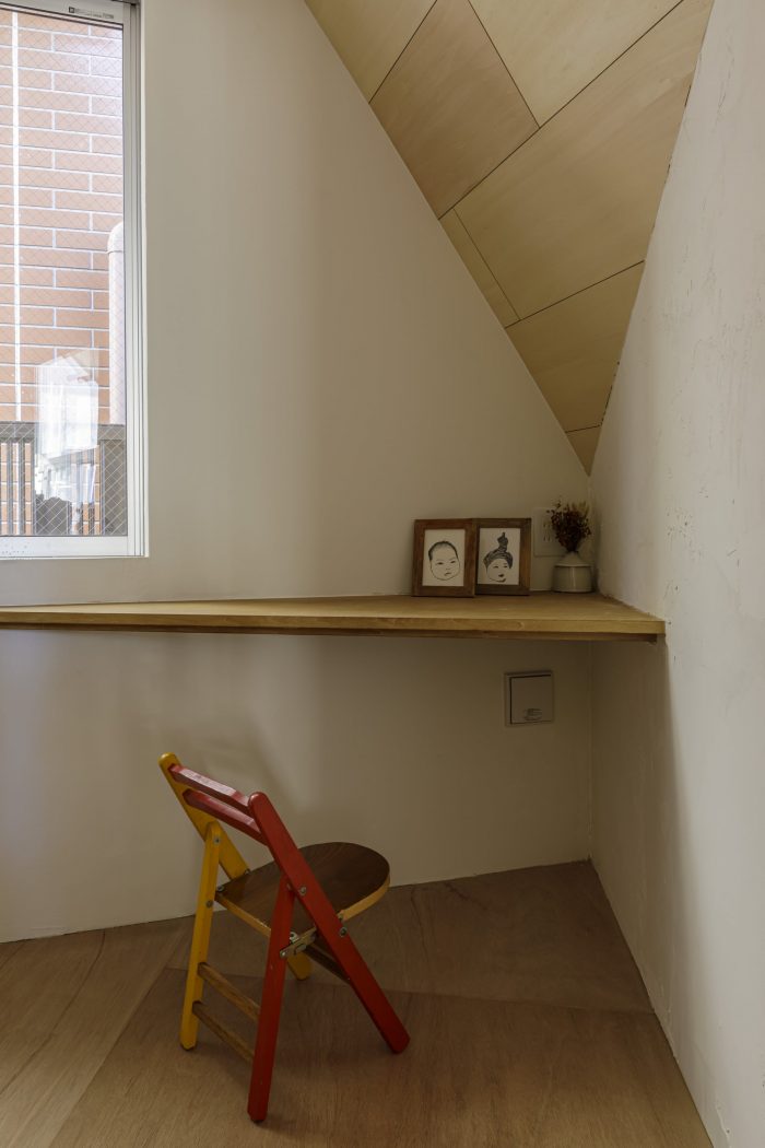 陡峭的倾斜屋顶和对角线的展墙交叉在一起,创造了一个 "宽/窄 "或 "高/低 "交叉空间的三维图形。通过创造日常生活中的尺度误差和动摇的感觉,这个房子将成为画家的想象之家,也是家庭的品味之家。