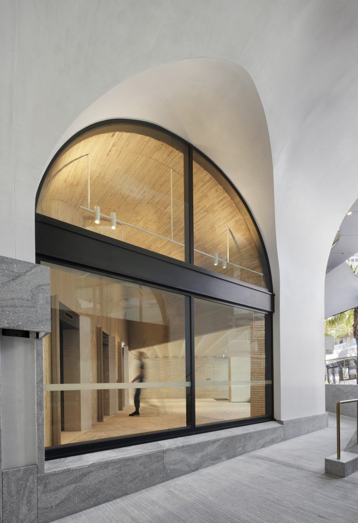 建筑物的底部有一个公共拱廊,与精品零售店、咖啡馆和餐饮店连接在一起,顶部是三层充满光线的精品商业办公空间,可以俯瞰振兴的巷道。