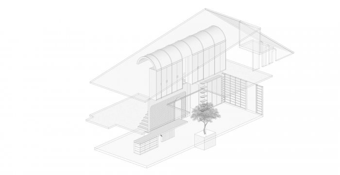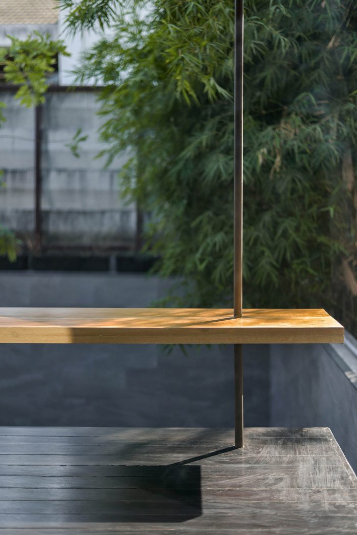 Once the barrel vault form is discovered, the architects decided to assemblage the stair and the storage system as a part of the vault geometry. As a result, on the second, the vault, once was a result of a make do decision, has turned itself to be an important device in manipulating the space. Similar to philosophy of their practice, the architects design their own house, Baan 96/1 with an intention of finding a lasting peaceful effect the inhibit inside the house. Baan 96/1 does not scream for any attention from the exterior approach. All of it’s magical moment were carefully craft and place to produce a meaningful subtle effect.