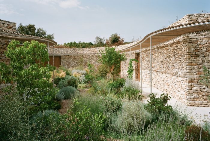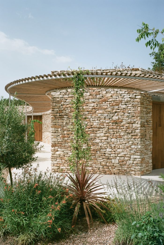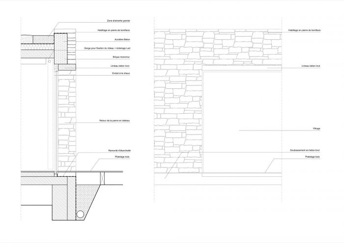 Coming from a short circuit, the project is truly focusing on promoting the local stone industry through collection work near the site. Collected and then transported, the stones made it possible to directly create the facades of the Hotel. The walls are made of bricks insulated from the inside, with lime plaster.