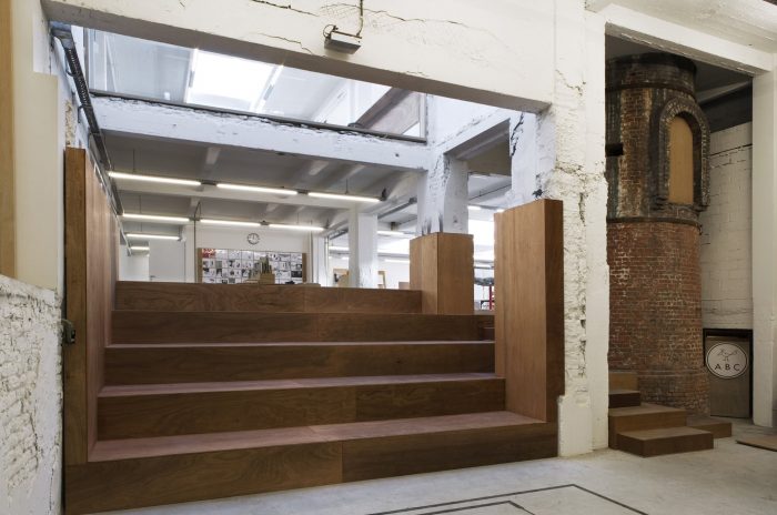 In time, an organic ensemble manifests itself which is nevertheless structured and flexible enough to support the varying programmatic exploitation of the building. As a consequence of the generic character, alternating with intermittent exceptional interventions, the building can easily house new, potential functions over the long term. The materiality of the building is deliberately rough and – resulting from the construction economy – also unfinished. The tension created with the tactile multiplex wooden studios that is so distinctive for ABC is given full rein here.