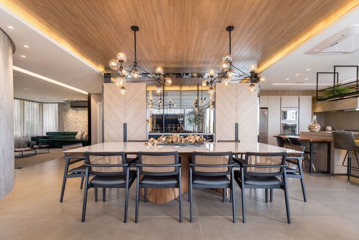 The material used on the exterior of the residence is reflected in the internal environments, where a connection is created through natural coatings, such as wood, exposed concrete and miracema stone, making the residence welcoming and unifying the language of the environments. We highlight the infinity pool, strategically positioned at the back of the lot, which is integrated into the social area of the residence, and has a breathtaking view.