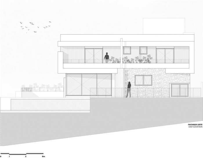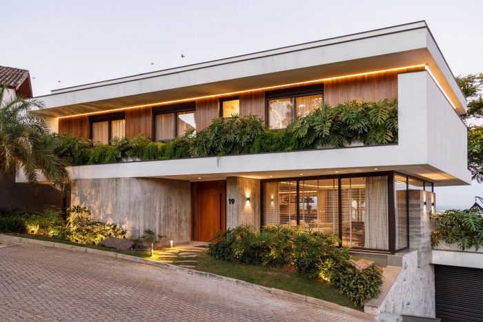 Thought to meet all the needs and characteristics of the family, the project's premise was to bring the contemporary style of the owners, combined with the comfort and practicality of everyday life. The idea was developed from the visuals of the surroundings, in addition to the great challenge of designing a house with an extensive program of needs from a land with more than 7 meters of slope and irregular shape, in addition to meeting several legal conditions.