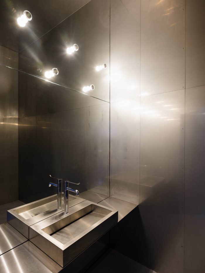 单调的混凝土被均匀地涂成80厘米长的条状,以强烈的青金石蓝色嵌入整个空间,使整个房间成为一个空间雕塑,与它的大胆色彩密不可分。冈萨雷斯-哈斯(Gonzalez Haase AAS)为该空间设计的家具是实心橡木,而烘焙食品的架子是由电抛光不锈钢制成。进入的自然光改变了蓝色的强度,表面从光泽到哑光,取决于一天中的时间、天气和观察者的位置。有时光比暗多,而其他的则相当辉煌和强烈。