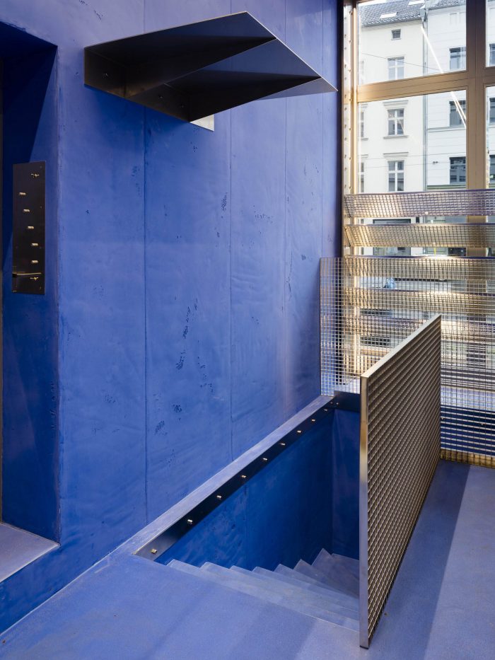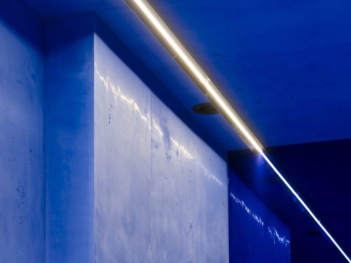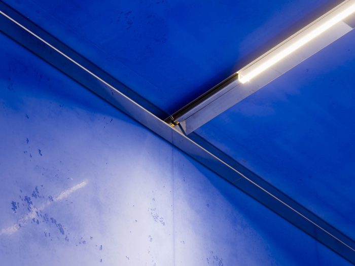 The colour itself is inspired by paintings from the 17th century, most notably those of Jan Vermeer and his interest in the reproduction of light and material structures. Vermeer was particularly impressed by the painting of light and shadow, as was Gonzalez Haase by the space, completely transformed by light and shadow over the course of the day and light’s progression. Like many painters of his time, Vermeer used a very limited palette. The only significant difference between his palette and those of his contemporary artists was the extensive use of natural ultramarine (pure lapis lazuli) instead of the more affordable azurite. Natural ultramarine is made from the powder of the crushed semi-precious stone lapis lazuli. The blue was applied extensively by Vermeer and is extremely rich in colour, dominating the palette of any painting it is applied to.