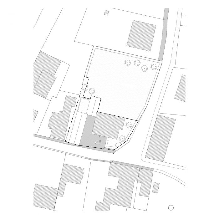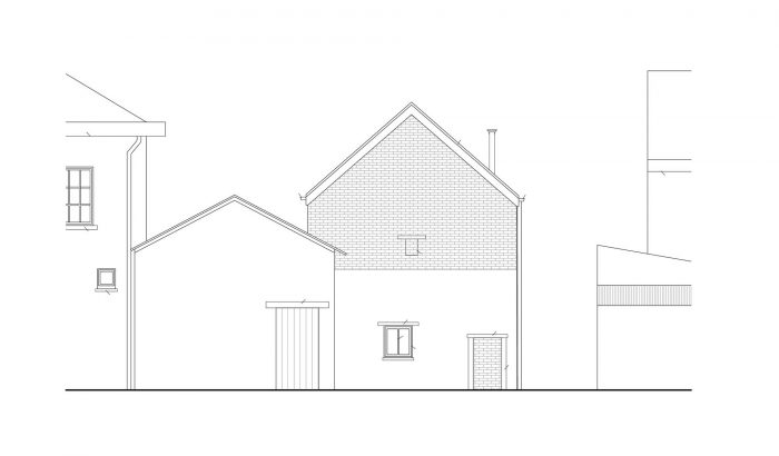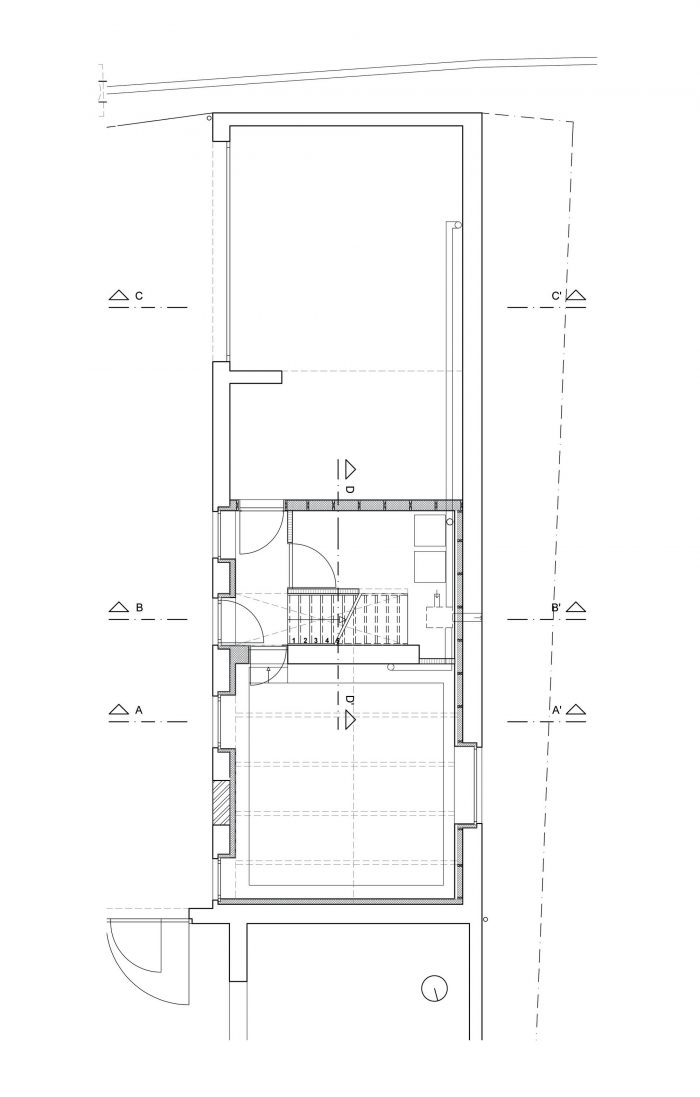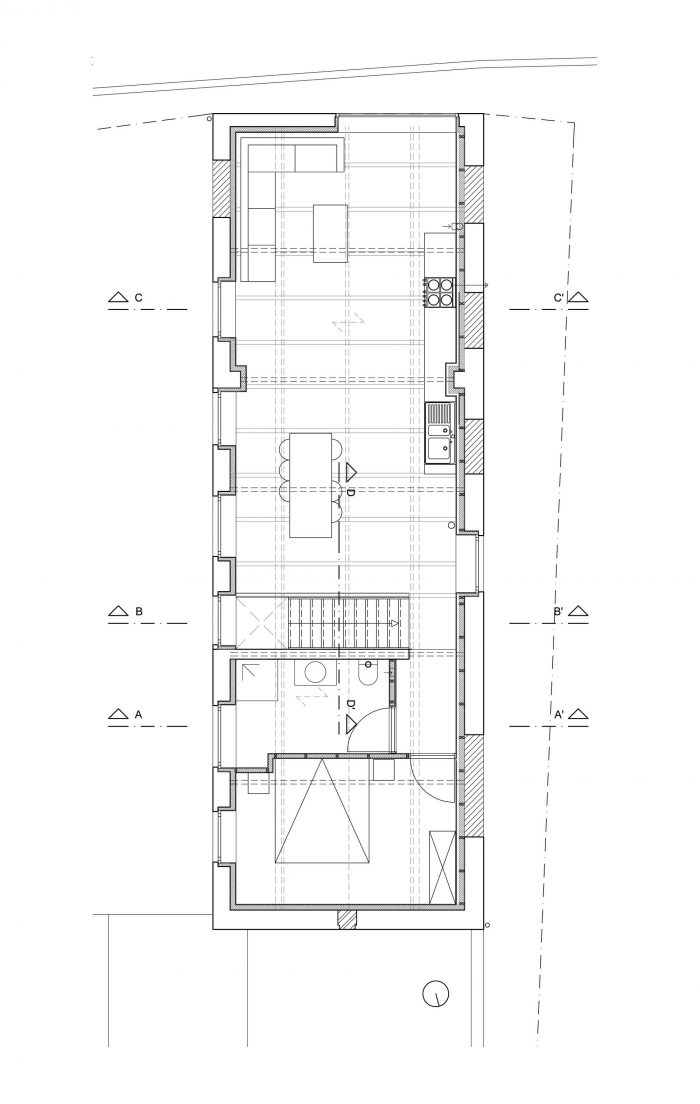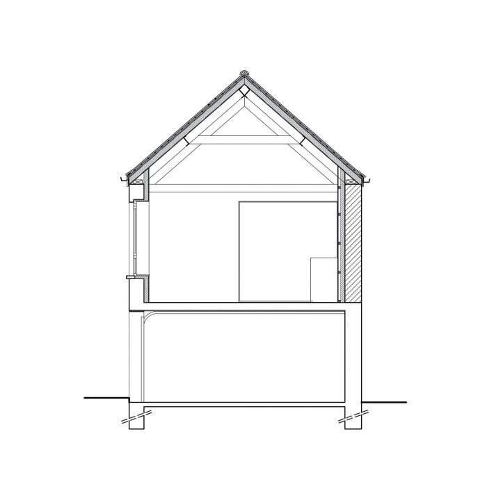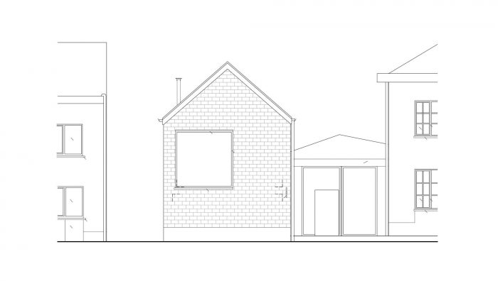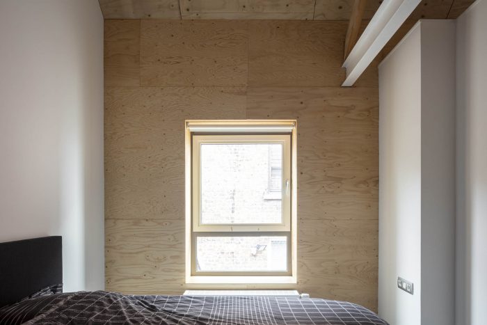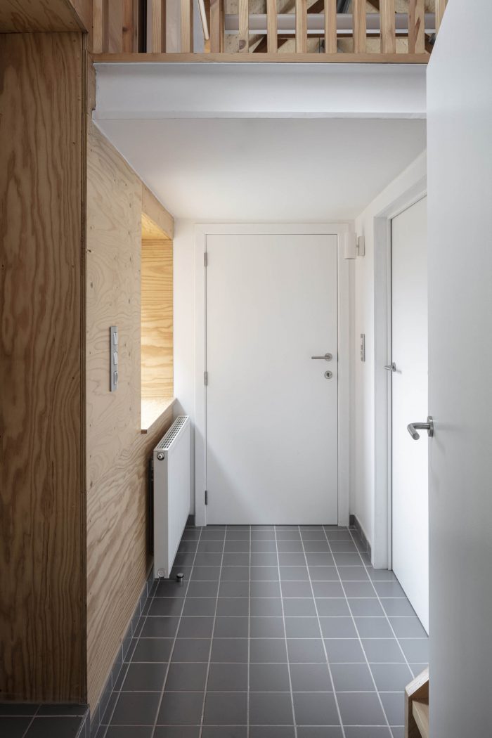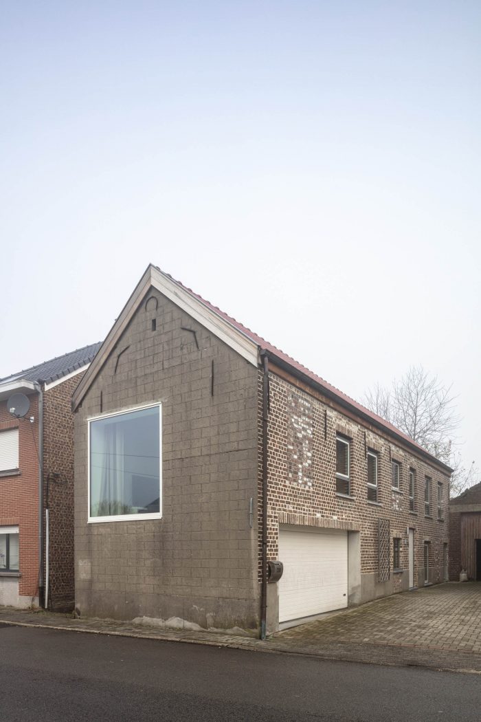 A big window on the head of the building opens the living space with a nice view on the street. It brings a relation to the street without compromising the privacy.