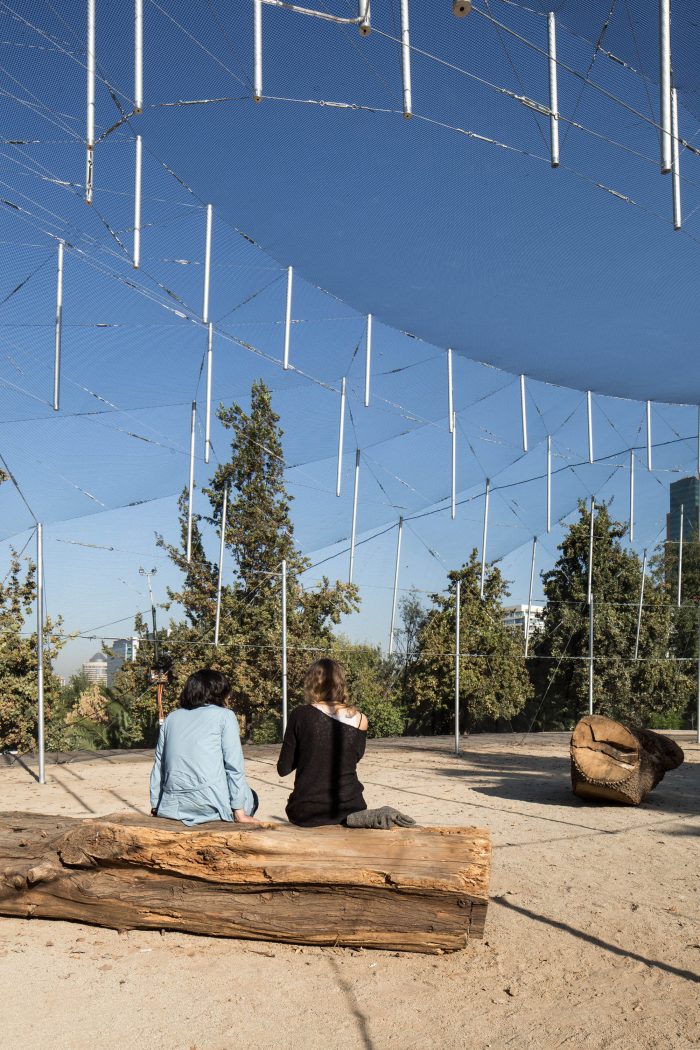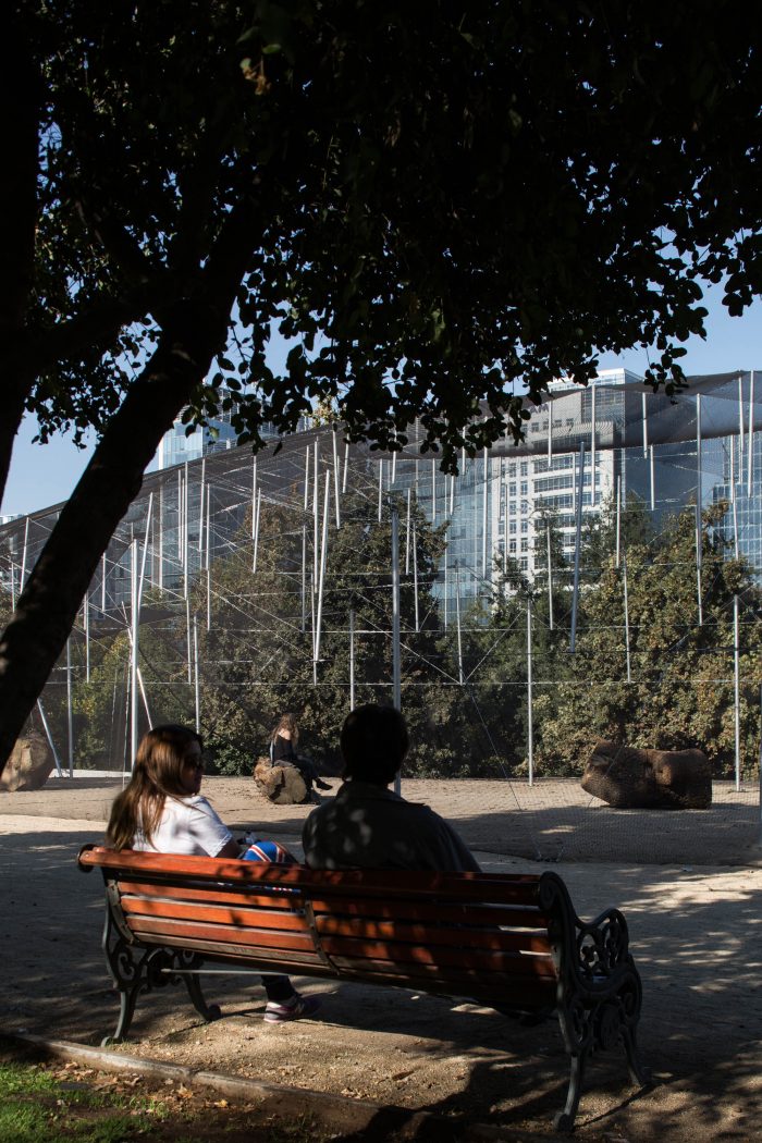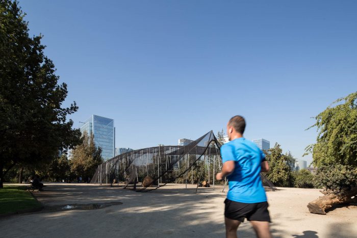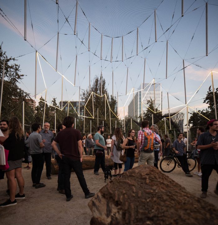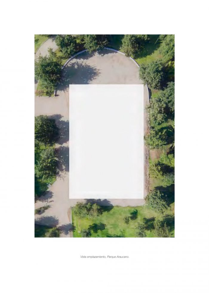 The place is Parque Araucano. At times it is a square, at times a true urban park with recycling, parking, a mall, a skyline crowded with buildings. Faced with this diversity of activities, the proposal inserts a new interior space in the operation of the park; a lounge. This place is closely related to the outside world since it takes advantage of the summer and its benefits; being an escape from the sun during the day and an illuminated dome during the night.