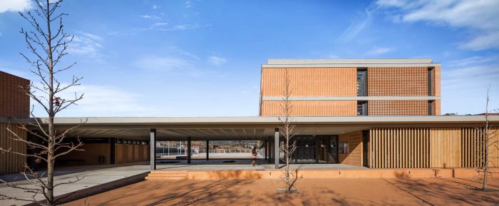 Economical, for its constructive simplicity and the square meters built in relation to the requested needs of the program. Compact, as it occupies less territory and frees up outdoor space with consistent measures for leisure activities, without residual spaces, facilitating the control of exterior space and allowing easy expansion. Flexible, the programs of the educative spaces have an important mutability and the operation of the centre requires great flexibility to accommodate different uses over time. Independent access is guaranteed for the gym, the library, the parent-teacher association, and the outside toilets, without having to enter the centre.