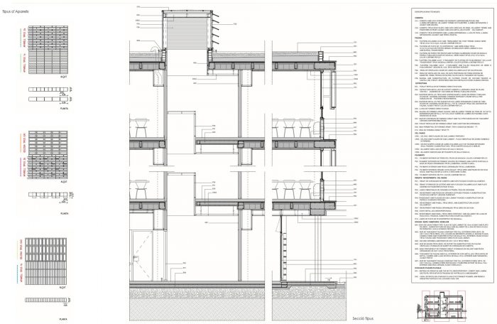 The new Institute is located on a plot at the edge of the housing area of the Aimerigues sector, on the threshold of future city growth and an area of parks of important dimensions limited by the street Icaria. The implementation is defined by the location of the building's volumes within the plot: a compact volume aligned on the street Pablo Iglesias and a smaller volume that contains the gymnasium and that defines the access through a public space and the porch. The typological model proposed is of a compact nature with a bright and generous central corridor, with classrooms on both sides. An economical, compact, flexible and efficient volume.