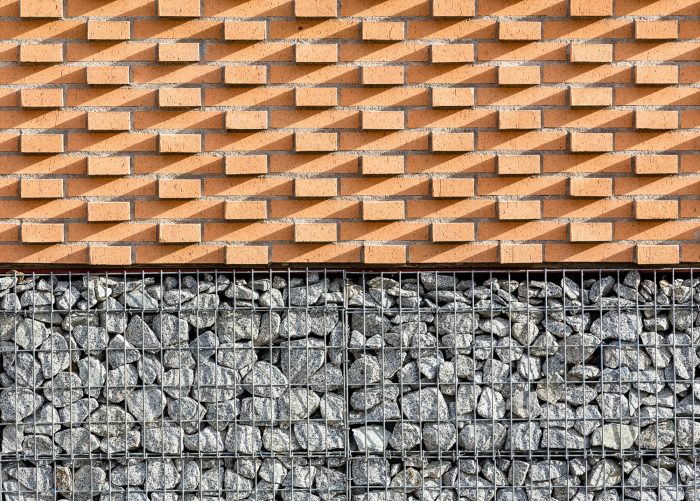 Between the two volumes a south-facing porch is generated, through which the institute and the gym are accessed. As for the materials, the use of ceramics on the facade with various types of rigging is used to generate different textures, making reference to the city's industrial architecture tradition. The rest of the closures are made of glass, cellular polycarbonate and covered with pine in some areas of the ground floor. Sun protection is realized based on adjustable ceramic slats that avoid direct radiation but allow diffused light to enter. Its height is adjusted to avoid direct sun but allowing the visibility of exterior views.