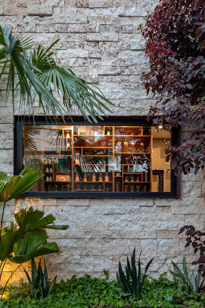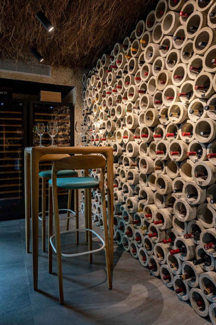 The cava area is left with its front access to the bar. The design intention was to generate containers of wine bottles inspired by the long-used feathered blocks in the Dominican Republic. Manufacture them with local labor and as it is a material that absorbs the temperature of the environment and helps keep the wines to their ideal point. The diner area generates a space for 36 personal. With the integration of straight furniture and chairs.