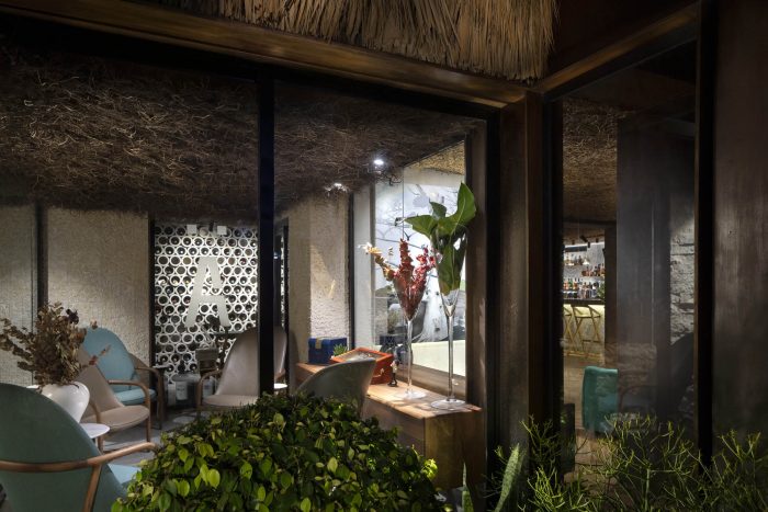 卡瓦酒区被保留在通往酒吧的前面。设计意图是产生酒瓶的容器,其灵感来自多米尼加共和国长期使用的羽毛块。用当地的劳动力制造它们,因为它是一种吸收环境温度的材料,有助于保持葡萄酒的理想点。就餐区产生了一个36个人的空间。随着直板家具和椅子的整合。