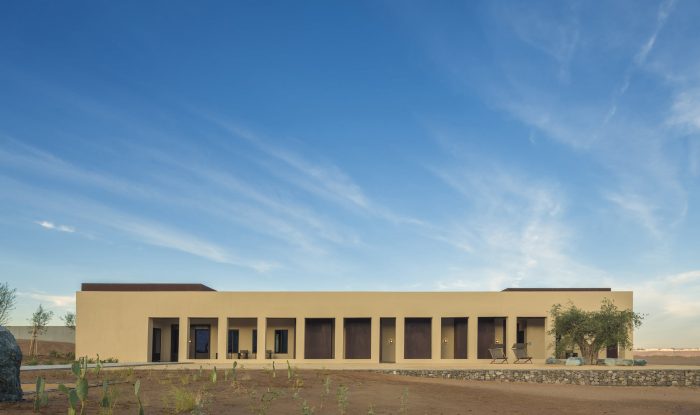 The architecture and design of the Al Faya Lodge, by architect Jonathan Ashmore and his Dubai and London-based practice ANARCHITECT are paramount to the experience it provides. Two single-story, stone-built buildings from the 1960s, previously occupied as a clinic and grocery store, have been re-imagined into a contemporary boutique lodge and restaurant.