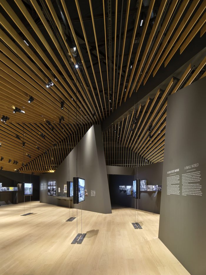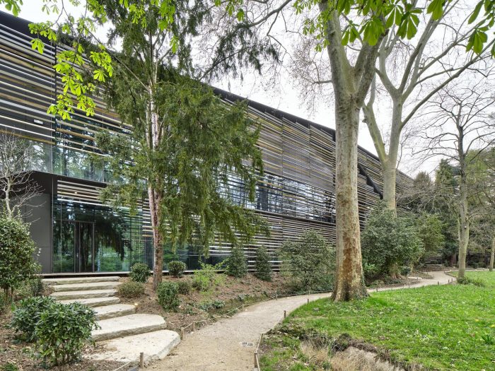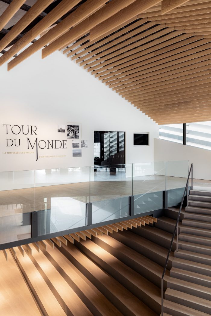 展示空间被设计成一个延伸的线性序列,从小路穿过这个花园。一个由铝和木头制成的屏幕被插入路径和外部环境之间,同时它继续在水平和垂直方向上蜿蜒,控制着两者之间的关系。阿尔伯特-卡恩将花园和展示空间相融合的梦想通过环境和建筑的融合得以实现。