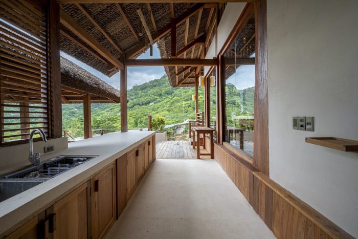 因此,尽管规模不大,施工队还是花了很多时间来进行施工。建筑物使用了大部分当地材料,从整个主体结构和地板的木材、建造花岗岩地板的粗粒沙、椰子叶屋顶、走道的天然石碑。...到家具、桌子和椅子,都是由当地工匠手工制作的。此外,建筑区位于许多现有的大岩石上,这对建筑工程来说是很困难的,但这也有助于建筑有一个美丽的形状,适合这里的自然地形。