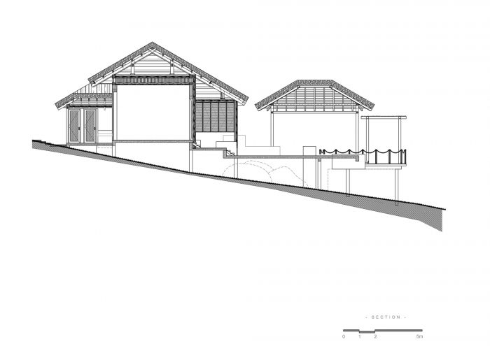 Towards the natural experience, a growing trend in Vietnam, promoting the strengths of traditional architecture and natural landscapes. We approach the project with the desire to keep the wildness of the surrounding landscape. The building consists of several wooden structures, thatched roofs, and interlocking volumes, along with sloping wooden floors that follow the natural topography, with the lowest floor above an existing water tank. The project is located on a hillside, quite high, and has many disadvantages in transporting materials and preserving surrounding trees.
