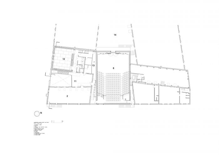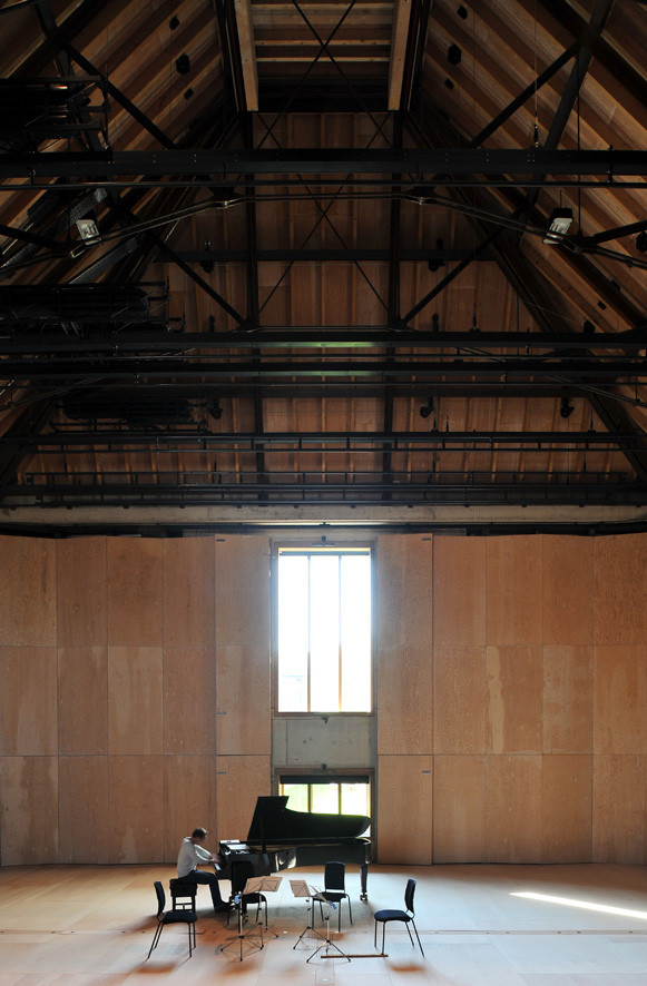 The project builds on Haworth Tompkins' past work with performance space in existing buildings such as the redevelopment of London's Royal Court theatre and the Young Vic (runner up for the 2007 RIBA Stirling Prize). The brief, for flexible and creative workspace, was similar to the National Theatre Studio in London, where Haworth Tompkins provided rehearsal, residency and research accommodation for theatre practitioners.