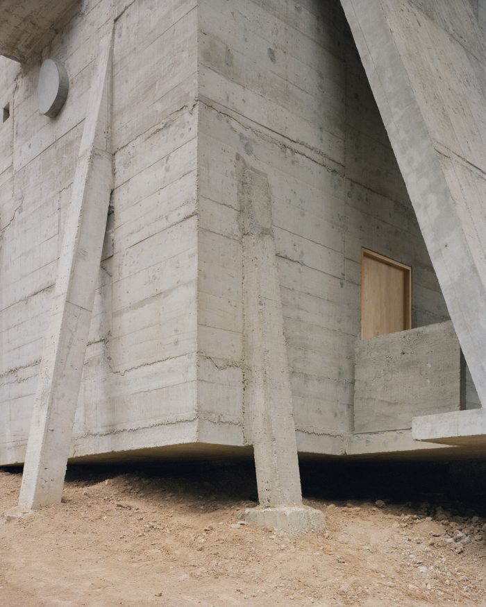 1. The project responds to the idea of an isolated house in the forest, without ever losing sight of the need for a strong sense of security; a house as a safe, made of concrete that defends and takes care of its inhabitants.