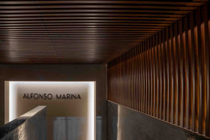 The project arises from the commission to revitalize the iconic brand's showroom in Mexico City. The intervened area comprises an external volume that serves as an entry point to other underground spaces. The rich history and meticulous attention to detail that distinguishes the brand prompted us to create a “craftsmanship vault” that acts as an entryway to a series of thresholds and transitional areas that weave together a sensory experience of light, textures, and scales. All while visitors disconnect from the outside and slowly discover Alfonso Marina's iconic pieces.