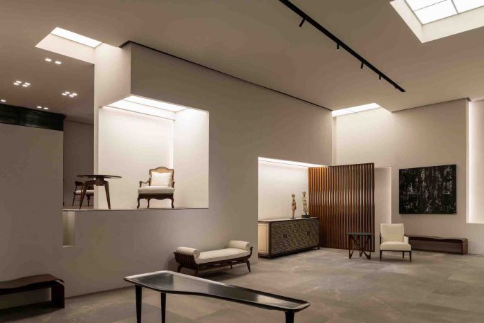 The way light and materials are utilized along with the carefully designed visual and wayfinding, create a unique symbiosis with the exhibited pieces, a total equilibrium that exemplifies the craft of making fine furniture and of creating sensory environments.
